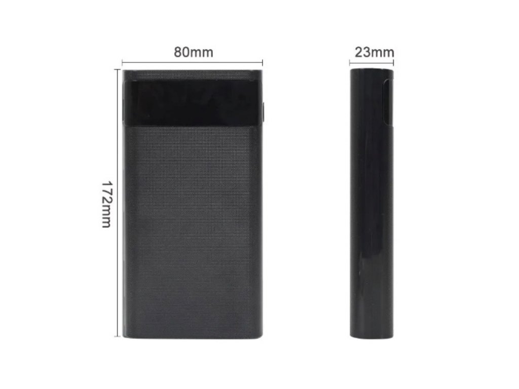 Ez a fekete színű, kijelzős power bank ház maximum 6 db 18650-es Li-ion akkumulátor befogadására alkalmas (az akkumulátorok nem tartozékok!). 5V 2A kimenettel, két USB és egy USB C porttal tölthetsz egyszerre több eszközt is, a microUSB port pedig a ház töltésére szolgál. A beépített ledes lámpa plusz funkciót jelent túrázáshoz, sötétben.