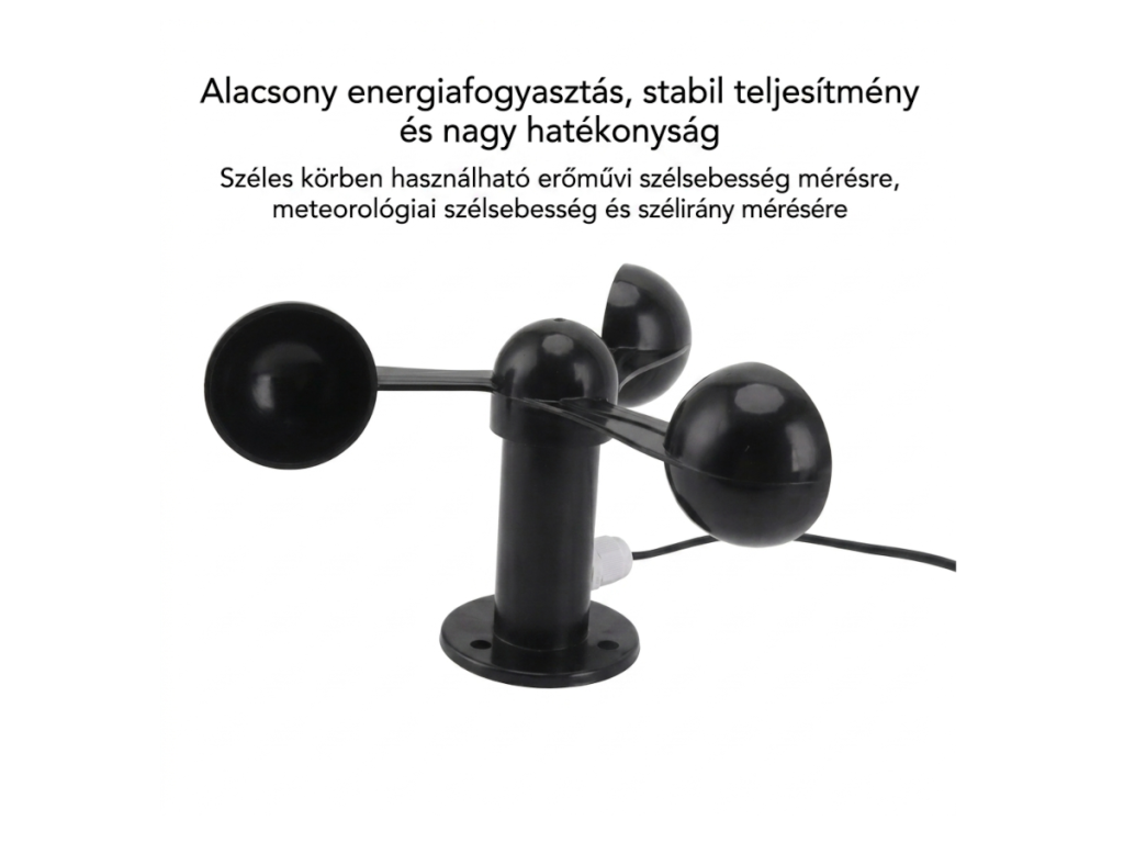 🌬️ 360° szélmérés A 3 csészés kialakítás minden irányból érkező szél esetén pontos mérést tesz lehetővé.