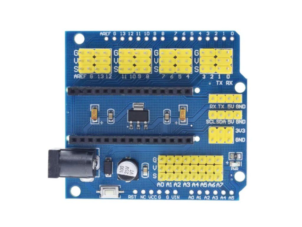 Ez a multi-purpose bővítő panel Arduino NANO kompatibilis, amely jelentősen leegyszerűsíti a szenzorok és modulok csatlakoztatását. Ideális megoldás, ha szeretnéd elkerülni a kusza vezetékeket és gyorsan, átláthatóan szeretnél dolgozni.