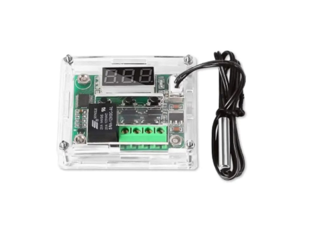 Hőmérsékletre kapcsoló relé modul kijelzővel és védőtokkal - W1209