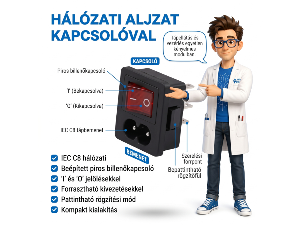 - Termék típusa: IEC C8 hálózati aljzat kapcsolóval