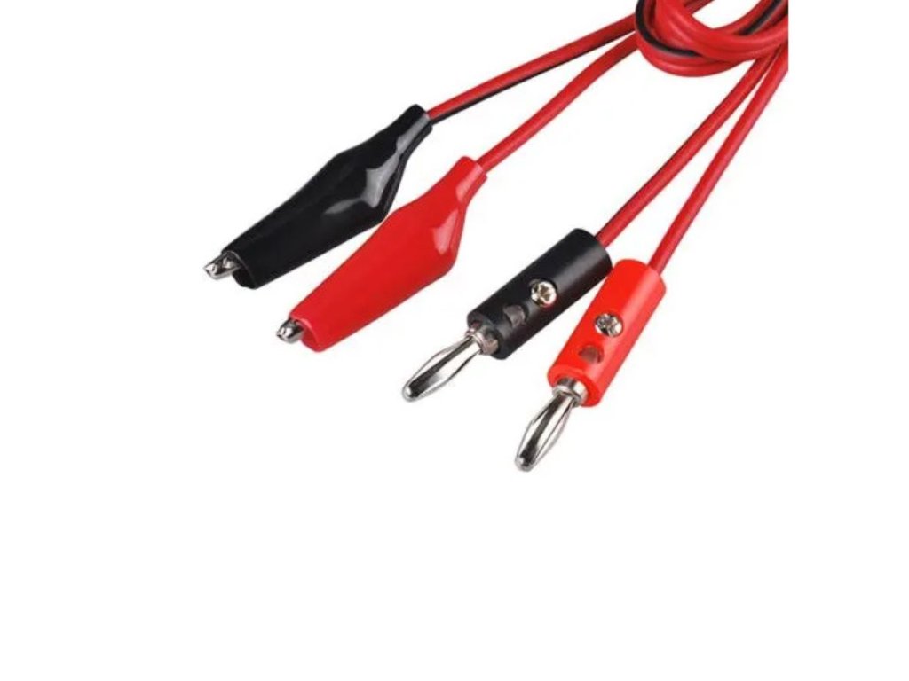 Az egyik végén krokodilcsipesz, a másikon apa banándugó található, így mind szabványos mérőműszerekhez, mind különböző vezetősínekhez, sorkapcsokhoz illeszthető.