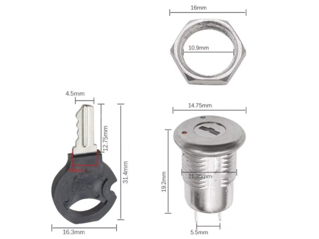 Az S1203 12mm-es Fém Kulcsos Kapcsoló egy megbízható ON-OFF (2 fokozatú) elektronikus zár, amely kulcsos vezérlést biztosít áramkörök számára. Kis beépítési átmérője (12 mm) és fém felépítése miatt ideális olyan alkalmazásokhoz, ahol fizikai védelemre és kulcsos hozzáférésre van szükség a tápellátás vezérléséhez vagy a funkciók engedélyezéséhez.