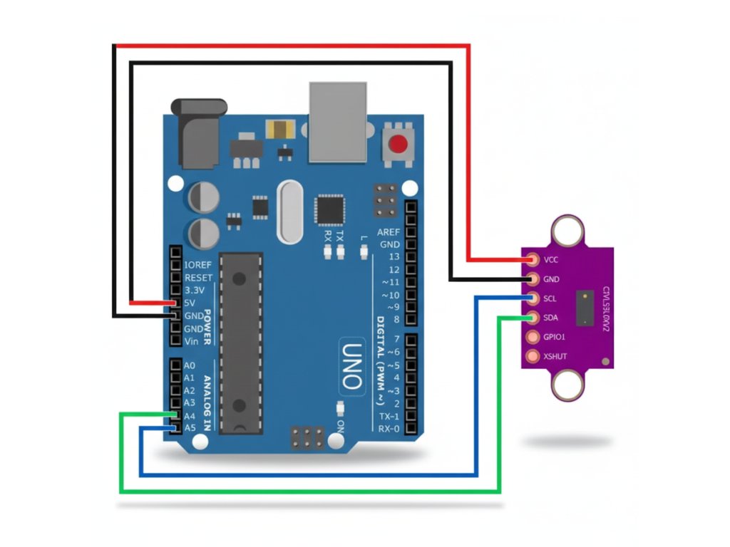⚡ I2C kommunikáció – A távolságmérési beállítások és a szenzor konfigurációja az I2C (TWI) interfészen keresztül érhetők el.