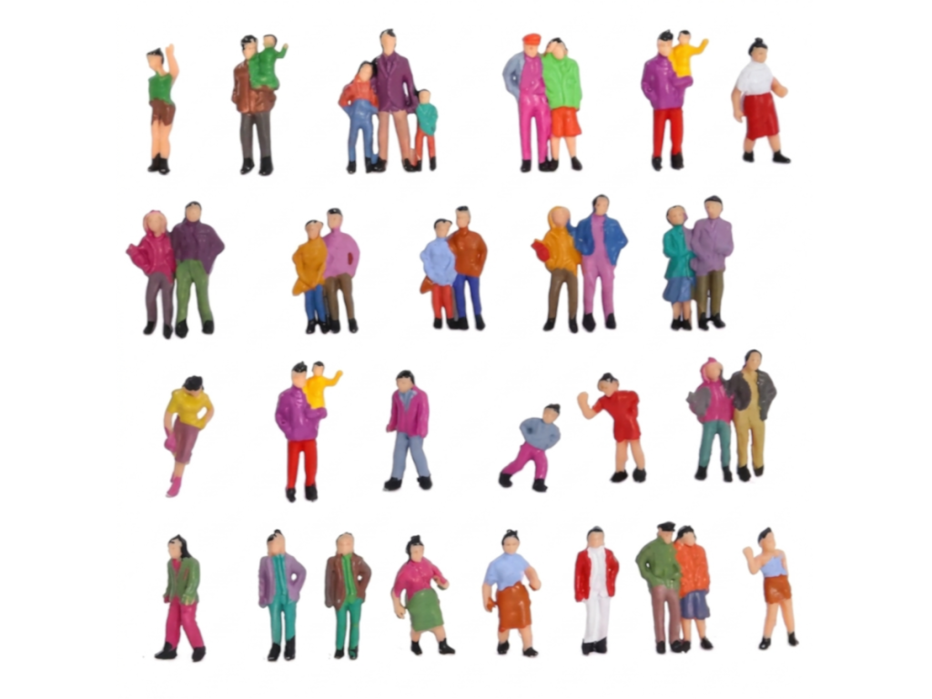 Ezek a HO méretarányú (1:87) makett ember figurák kiváló kiegészítők modellvasút terepasztalokhoz, diorámákhoz, városi jelenetekhez és épületmakettekhez. A figurák különböző pózokban és színekben érkeznek, így életszerűbbé és változatosabbá teszik a makett környezetet.