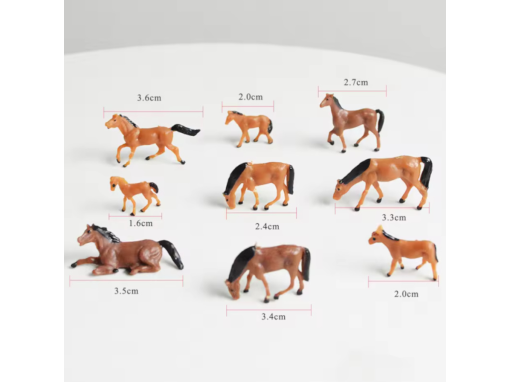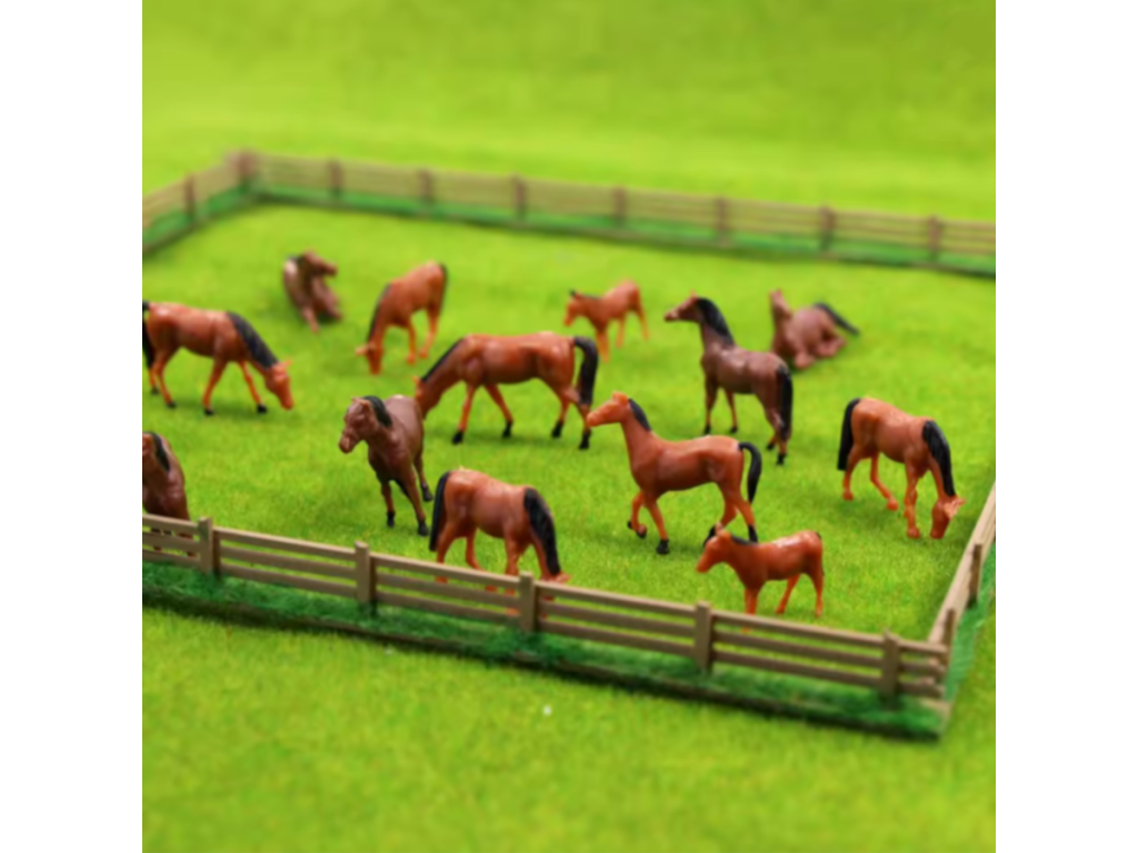 Ezek a HO méretarányú (1:87) makett ló figurák kiváló kiegészítők modellvasút terepasztalokhoz, farm diorámákhoz, vidéki jelenetekhez és makett tájakhoz. A lovak különböző pózokban érkezhetnek, így természetesebb és változatosabb állatkerti, tanyasi vagy legelős jelenet alakítható ki.