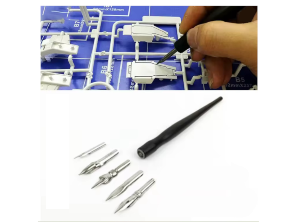 Makettező gravírozó toll (scriber) cserélhető fejekkel - Panelvonal karcoló eszköz