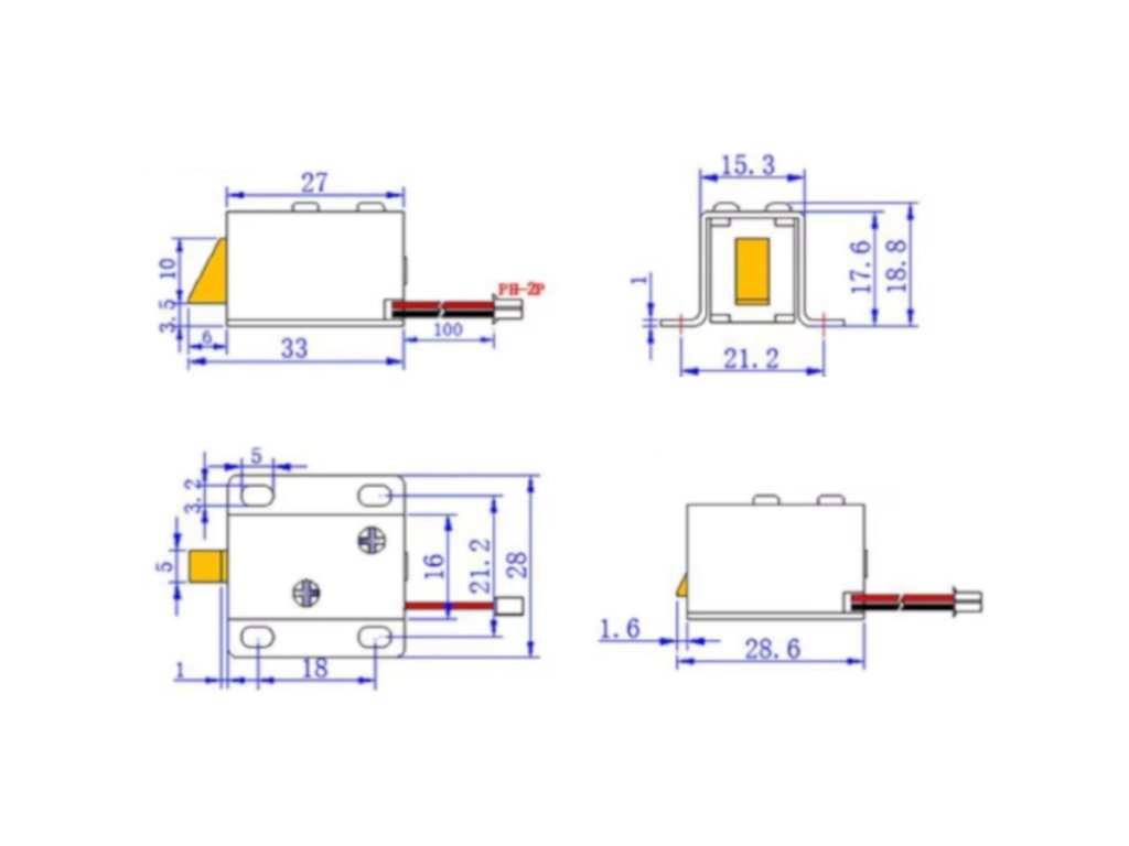 A 2728-as Mini Elektromágneses Zár egy kivételesen kompakt, 12V DC táplálású retesz, amelyet fiókok, szekrények vagy kisebb automata rendszerek diszkrét és gyors zárására terveztek. Alacsony áramfelvétele (0.4A) és kis mérete (27 x 28 x 19 mm) ideálissá teszi szűk beépítési helyekre, miközben több mint 500.000 ciklusnyi élettartamot garantál.