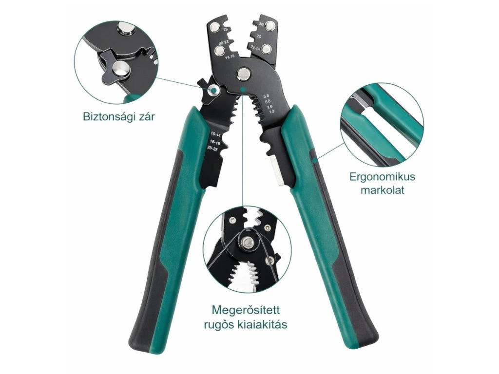 - 3 az 1-ben funkció: Krimpelés, blankolás és vágás egyetlen szerszámban