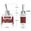 Ez a nagyméretű kétállású billenőkapcsoló 56×13×30 mm méretű, fejátmérője 12 mm, két pin-es kialakítású. Maximális terhelhetősége 12V DC-n 30A, illetve 250V AC-n 15A – magas áramú, nagy teljesítményű kapcsolásokhoz alkalmas.