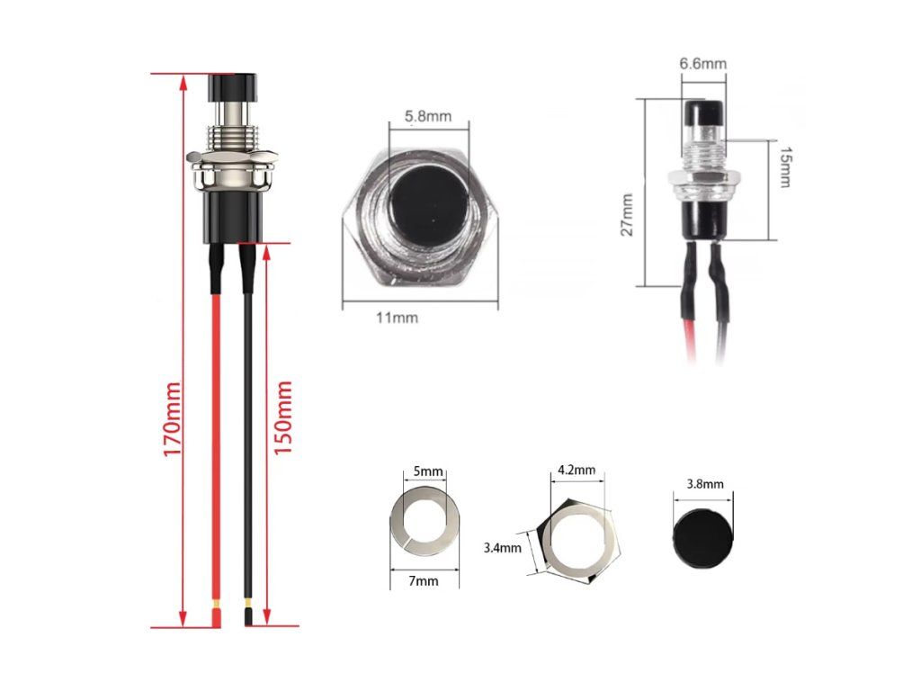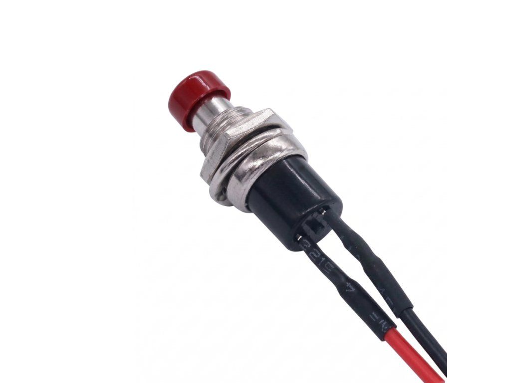 A nyomógomb kapcsoló kábellel egy egyszerű, 2 pines, piros színű, előre szerelt gyorskapcsoló, amely 1A áramig AC 250V-ig biztonságosan működtethető. Robusztus, hosszabb kábellel szerelve gyorsan installálható bármilyen vezérlőpanelre, gépre, prototípusba vagy DIY projektbe.