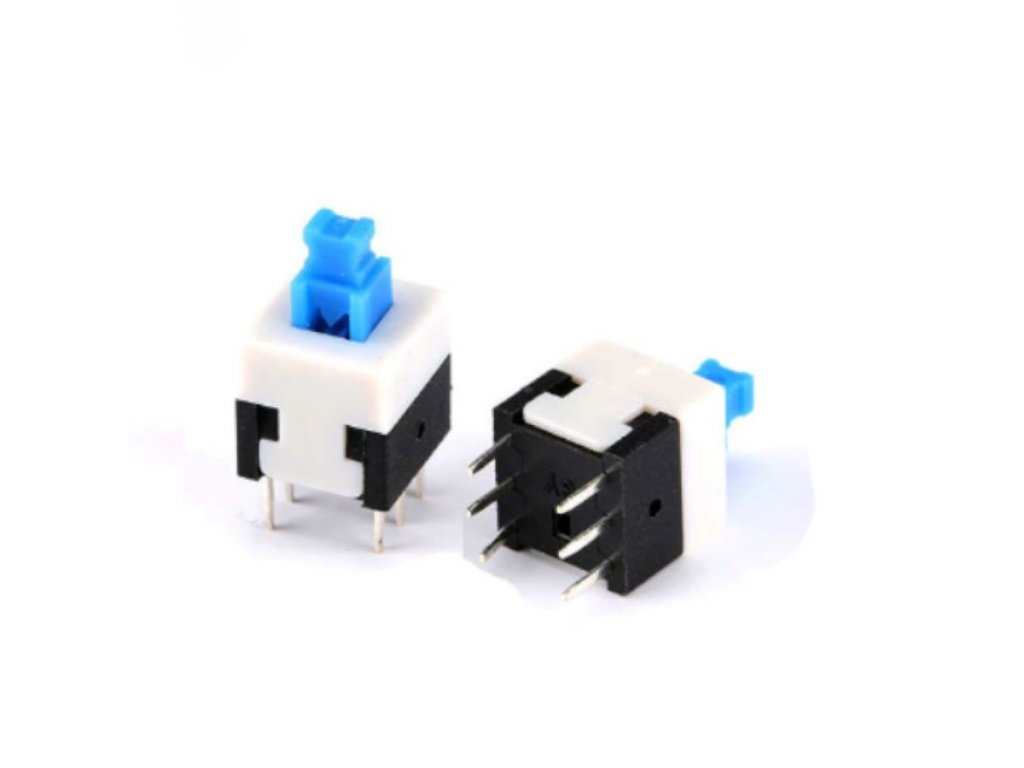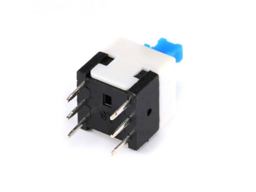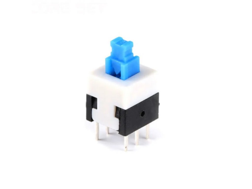 Ez a 6 pines, önzáró (kétállású) mikrokapcsoló 8 × 8 × 8 mm méretű, névleges terhelhetősége 0,3 A 60 V AC, illetve 1,5 A 25 V AC mellett. Az érintkezési ellenállás kisebb vagy egyenlő 0,02 Ω, a szigetelési ellenállás legalább 100 MΩ. Tipikus felhasználás: váltókapcsoló, áramkör-állapot rögzítő kapcsoló.
