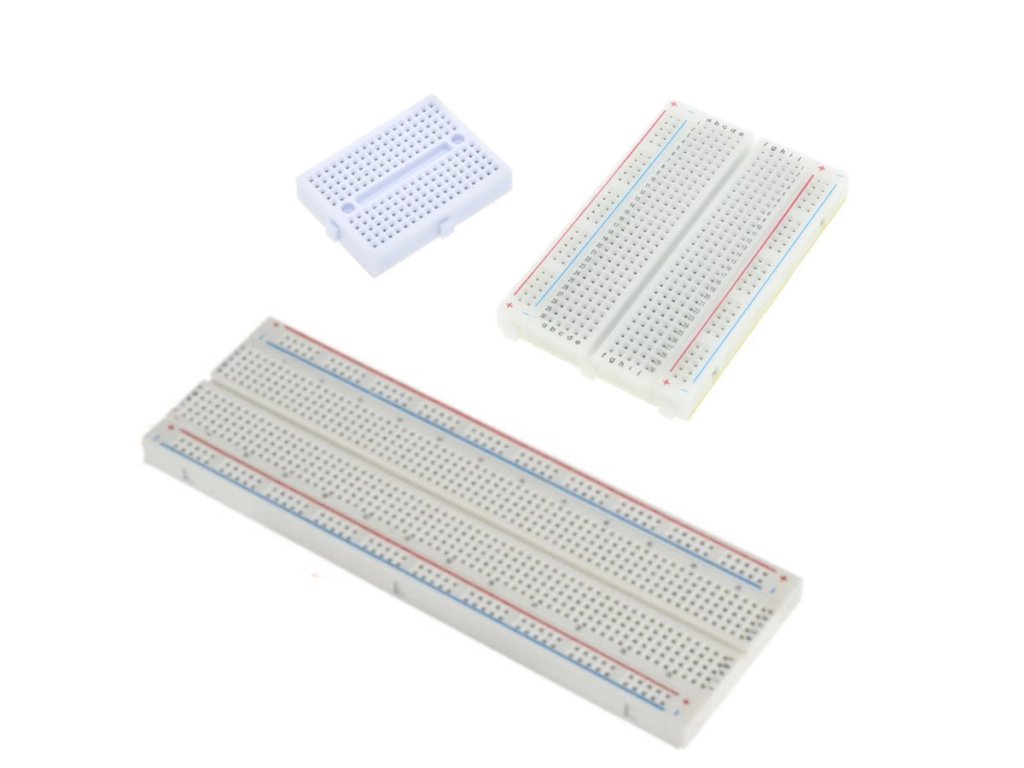 🧩 400 lyukas közepes breadboard – kb. 85 × 55 × 9 mm; középső mező + kétoldali tápsín; általános asztali prototípusokhoz, kisebb MCU‑s projektekhez