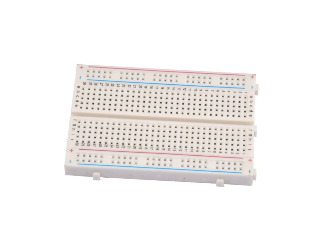 🧩 400 lyukas közepes breadboard – kb. 85 × 55 × 9 mm; középső mező + kétoldali tápsín; általános asztali prototípusokhoz, kisebb MCU‑s projektekhez