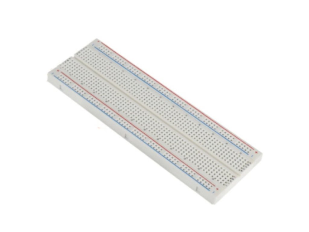 🧩 830 lyukas teljes méretű breadboard – kb. 165 × 55 × 9,7 mm; 10 oszlop × 63 sor + 2 tápsínpár (gyakran osztott); összetettebb rendszerekhez, több modul/IC kényelmes elhelyezésével