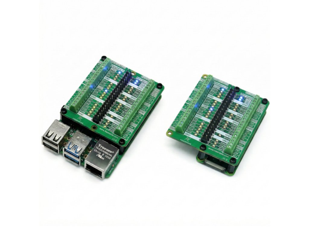 ✅ Egyszerű vezetékezés – A sorkapcsok és a fejlécek biztosítják a Raspberry Pi 40-tűs GPIO-jához való csatlakozást, megkönnyítve a külső komponensek bekötését.