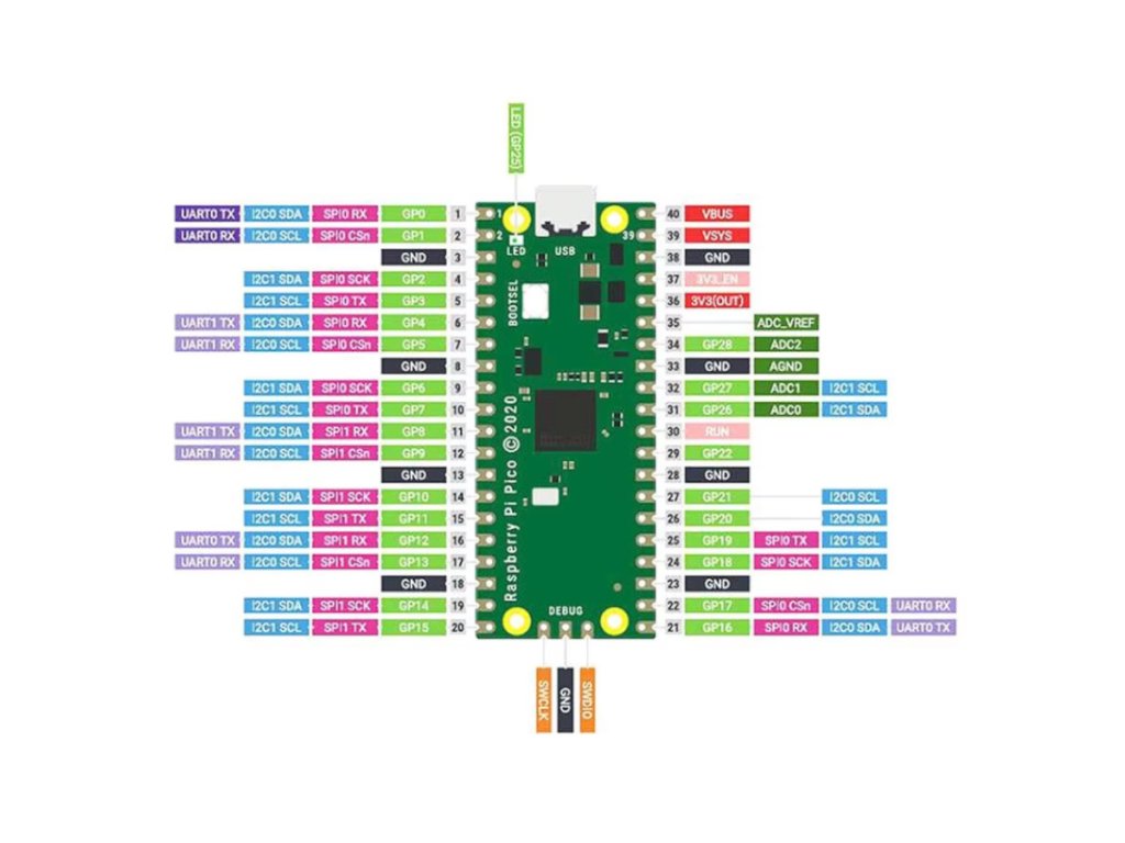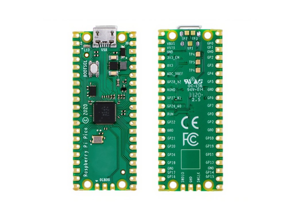 A Raspberry Pi Pico egy nagy teljesítményű, alacsony fogyasztású mikrovezérlő kártya, amelyet RP2040 chip hajt. Kétmagos ARM Cortex-M0+ processzorával és 264 KB beépített RAM-jával ideális választás a legkülönfélébb digitális és analóg projektekhez, a kezdő szintű programozástól a komplex I/O feladatokig.