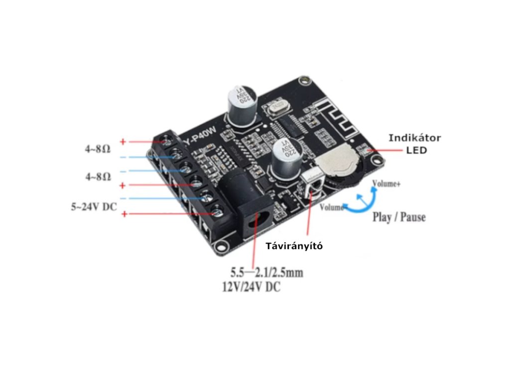 XY-P40W Bluetooth 5.0 sztereó digitális erősítőmodul 2×40W ( 12–24V )